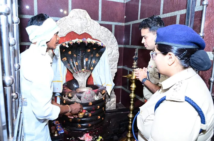 ఆదిలాబాద్ (విజయక్రాంతి): ఇంద్రవెల్లి మండలం కేస్లాపూర్ లోని నాగోబా ఆలయాన్ని జిల్లా ఎస్పీ అఖిల్ మహాజన్ సందర్శించారు. బుధవారం ఆలయానికి వచ్చిన ఎస్పీకి మెస్రం వంశీయులు ఘనంగా స్వాగతం పలికారు. అనంతరం నాగోబాకు ప్రత్యేక పూజలు చేసిన ఎస్పీని ఆలయ నిర్వాహకులు శాలువాతో సన్మానించి నాగోబా చిత్రపటాన్ని అందజేశారు. అనంతరం ఎస్పీ ఆలయ ప్రాంగణాన్ని కలియ తిరుగుతూ ఆలయ విశిష్టతను మెస్రం వంశీయుల ఆచారాలను, ఆలయ చరిత్రను, అడిగి తెలుసుకున్నారు. ఎస్పీ వెంట ఉట్నూర్ ఏఎస్పీ కాజల్ సింగ్, ఉట్నూర్ సీఐ మొగిలి, ఎస్సైలు సునీల్, మనోహర్, సిబ్బంది తదితరులు పాల్గొన్నారు.