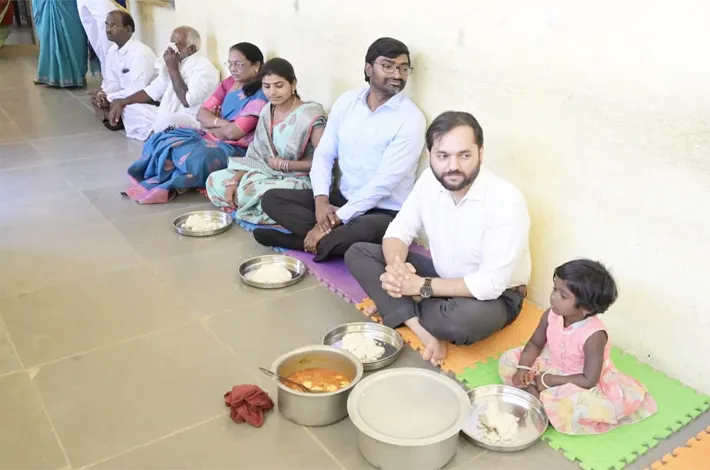 అంగన్వాడీ పిల్లలతో కలిసి భోజనం చేసిన జిల్లా కలెక్టర్ దీపక్ తివారి