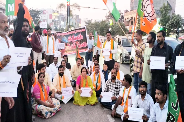 బంగ్లాదేశ్లో హిందువు హత్యను నిరసిస్తూ హస్తినాపురంలో బీజేపీ శ్రేణుల ఆందోళన