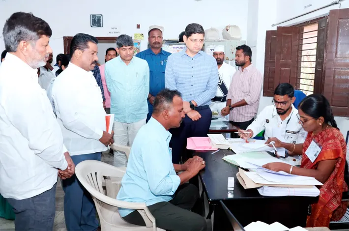 కామారెడ్డి, డిసెంబర్ 8, (విజయక్రాంతి): కామారెడ్డి జిల్లాలోని దోమకొండ మండలం గ్రామ పంచాయతీ కార్యాలయంలో ఏర్పాటు చేసిన పోస్టల్ బ్యాలెట్ కౌంటర్ ను జిల్లా కలెక్టర్ ఆశిష్ సాంగ్వాన్ సోమవారం సందర్శించారు. ఉద్యోగులు తమ పోస్టల్ బ్యాలెట్ ద్వారా ఓటు హక్కును వినియోగించుకుంటున్న విధానాన్ని కలెక్టర్ స్వయంగా పరిశీలించారు. ఈ సందర్భంగా ఆయన సంబంధిత ఎన్నికల సిబ్బందితో మాట్లాడి పోస్టల్ బ్యాలెట్ ప్రక్రియ పారదర్శకంగా, సక్రమంగా కొనసాగుతున్న విధానం పై వివరాలు తెలుసుకున్నారు.