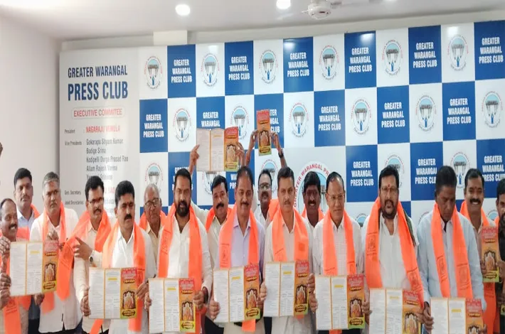 హనుమకొండ,(విజయక్రాంతి): హనుమకొండలో ప్రసిద్ధిగాంచిన శ్రీ భద్రకాళి అమ్మవారి బ్రహ్మోత్సవాల్లో భాగంగా ఈనెల 29వ తేదీన జరిగే పూజా కార్యక్రమాల్లో ఉమ్మడి వరంగల్ జిల్లా పెరిక కులస్తులందరూ పాల్గొనాలని ప్రొఫెసర్ వడ్డే రవీందర్ పిలుపునిచ్చారు. సోమవారం ప్రెస్ క్లబ్ లో ఏర్పాటు చేసిన విలేకరుల సమావేశంలో ప్రొఫెసర్ వడ్డె రవీందర్ మాట్లాడుతూ... శ్రీ భద్రకాళి భద్రేశ్వరుల కళ్యాణ ఉత్సవాలలో భాగంగా జరిగే పూజా కార్యక్రమంలో పెరిక కుల బంధువులు, ప్రత్యేక పూజలు చేసే విధంగా ఏర్పాట్లు చేయడం జరిగిందనీ, అందులో భాగంగా ఈనెల 29వ తేదీన పెరక కుల సంఘం ఆధ్వర్యంలో పూజా కార్యక్రమాలను నిర్వహించనున్నట్లు ప్రొఫెసర్ వడ్డే రవీందర్ తెలిపారు. ఈ పూజా కార్యక్రమాల్లో పెరిక కులస్తులు అంతా పాల్గొని అమ్మవారి కృపాకటాక్షాలు పొందాలని, అనంతరం అన్న ప్రసాద వితరణ కార్యక్రమం లో పాల్గొని విజయవంతం చేయాలని తెలిపారు.