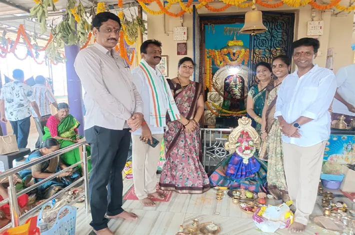 మంథని, ఏప్రిల్ 26 (విజయక్రాంతి): రాష్ట్ర ప్రభుత్వం శ్రీ వాసవి మాత జయంతి వేడుకలు అధికారికంగా నిర్వహించాలని నిర్ణయించింది. మంథని మున్సిపల్ చైర్మన్ ఓడ్నాల శ్రీనివాస్, వైస్ చైర్మన్ ముసుకుల సహేందర్ రెడ్డి ఆధ్వర్యంలో పాలకవర్గ సభ్యులు ఆదివారం మంథని పట్టణంలోని కన్యకా పరమేశ్వరి దేవాలయంలోని శ్రీ వాసవి మాత అమ్మవారికి పట్టు వస్త్రాలు సమర్పించారు. ఈ సందర్భంగా నిర్వహించిన జయంతి వేడుకల్లో పాల్గొని అమ్మవారి ఆశీస్సులను పొందారు. అనంతరం శ్రీ వాసవి మాత ఆర్యవైశ్య సంఘ సభ్యులు పాలకవర్గ సభ్యులను శాలువాలతో సత్కరించారు. ఈ కార్యక్రమంలో పాలక వర్గ సభ్యు లు ఎల్లంకి వంశీధర్, ఆర్య వైశ్య సభ్యులు మరియు తదితరులు పాల్గొన్నారు.