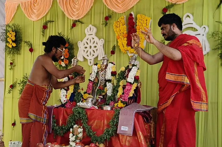 హుజురాబాద్ (విజయక్రాంతి): కరీంనగర్ జిల్లా హుజరాబాద్ మండలం సింగపూర్ లో శ్రీనివాసుని కళ్యాణం అంగరంగ వైభవంగా బుధవారం నిర్వహించారు. ఈ కళ్యాణానికి మాజీ ఎంపీ కెప్టెన్ లక్ష్మీకాంతరావు, హుస్నాబాద్ మాజీ ఎమ్మెల్యే ఒడితల సతీష్ బాబు, హుజురాబాద్ కాంగ్రెస్ పార్టీ నియోజకవర్గ ఇన్చార్జ్ ఒడితల ప్రణవ్ బాబులు హాజరై కళ్యాణాన్ని తిలకించారు. నియోజకవర్గంలోని ప్రజలకు మంచి పంటలు పండాలని, ప్రజలందరూ సుఖసంతోషాలతో, ఆయురారోగ్యాలతో ఉండాలని ఆ భగవంతున్ని కోరుకుంటున్నట్లు వారు తెలిపారు. శ్రీ పద్మాగోదా సమేత వెంకటేశ్వర స్వామి ఆలయంలో జరుగుతున్న బ్రహ్మోత్సవాల్లో భాగంగా చివరిరోజైన బుధవారం రోజున స్వామివారి కల్యాణోత్సవం నిర్వహించారు.