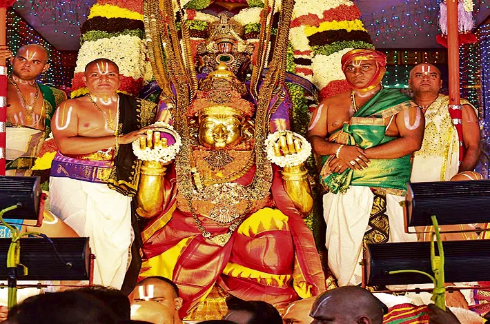 హైదరాబాద్, అక్టోబర్ 8 (విజయక్రాంతి) : కలియుగ ప్రత్యక్ష దైవం శ్రీనివాసు డు గరుడ వాహనంపై తిరుమాడ వీధుల్లో విహరించారు. మంగళవారం వెంకటగిరులు గోవింద నామ స్మరణతో మార్మోగగా, వేలాది మంది భక్తులు స్వామివారిని చూసి తన్మయత్వం చెందారు. సాయంత్రం 6.30 గంటల నుంచి రాత్రి 11 గంటల వరకు మలయప్ప స్వామి మాడ వీధుల్లో విహరించా రు. ఉదయం స్వామివారు మోహిని అవతారంలో భక్తులకు దర్శనమిచ్చారు. 3.5 లక్షల మంది భక్తులు వాహన సేవలను తిలకించినట్టు టీటీడీ అధికారులు తెలిపారు. భక్తుల కు అన్నప్రసాదాలు పంపిణీ చేశారు.