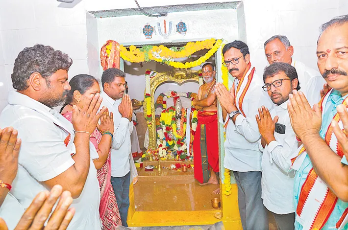 దేవాలయ పాలక చైర్మన్ వెంకటలక్ష్మి, పాలక సభ్యు లు రైతుగాని శేఖర్ బాలబోయిన శ్రీనివాస్, రామడుగు నాగేశ్వరరావు, గుమ్మడిల్లి వెం కన్న, బెల్లం రామారావు, కత్తి రాధమ్మ స్థానిక కాంగ్రెస్ పార్టీ నాయకులు అతిథు లకు ఘన స్వాగతం పలికారు.