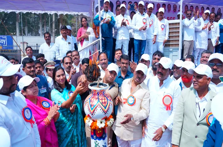 పటాన్చెరు, అక్టోబర్ 16 : 69వ స్కూల్ గేమ్స్ ఫెడరేషన్ రాష్ట్ర స్థాయి కబడ్డీ, వాలీబాల్ పోటీలు పటాన్ చెరు పట్టణంలోని మైత్రి మైదానంలో గురువారం అంగరంగ వైభవంగా ప్రారంభమయ్యాయి. నిరంతరం క్రీడల అభివృద్ధిని కాంక్షించే పటాన్ చెరు ఎమ్మెల్యే గూడెం మహిపాల్ రెడ్డి ఆతిథ్యంలో 33 జిల్లాలకు చెందిన క్రీడాకారులు పోటీలకు హాజరయ్యారు. జిల్లా పరిషత్ బాలికల ఉన్నత పాఠశాల విద్యార్థులు క్రీడా జ్యోతిని అందించగా ముఖ్య అతిథులుగా హాజరైన మెదక్ ఎంపీ రఘునందన్ రావు, ఎమ్మెల్సీ అంజిరెడ్డి, కలెక్టర్ ప్రావిణ్య, ఎస్పీ పరతోష్ పంకజ్, పటాన్ చెరు ఎమ్మెల్యే గూడెం మహిపాల్ రెడ్డిలు క్రీడాజ్యోతిని వెలిగించి, క్రీడా పతాకాన్ని ఎగురవేసి క్రీడలను ప్రారంభించారు. అనంతరం శాంతి కపోతాలను ఎగురవేశారు. అనంతరం క్రీడాకారుల గౌరవ వందనాన్ని స్వీకరించారు. వివిధ పాఠశాలల విద్యార్థులు, ఆయా జిల్లాలకు సంబంధించిన క్రీడాకారులు నిర్వహించిన మార్చ్ ఫాస్ట్, సంస్కృతిక కార్యక్రమాలు అందరినీ అలరించాయి.