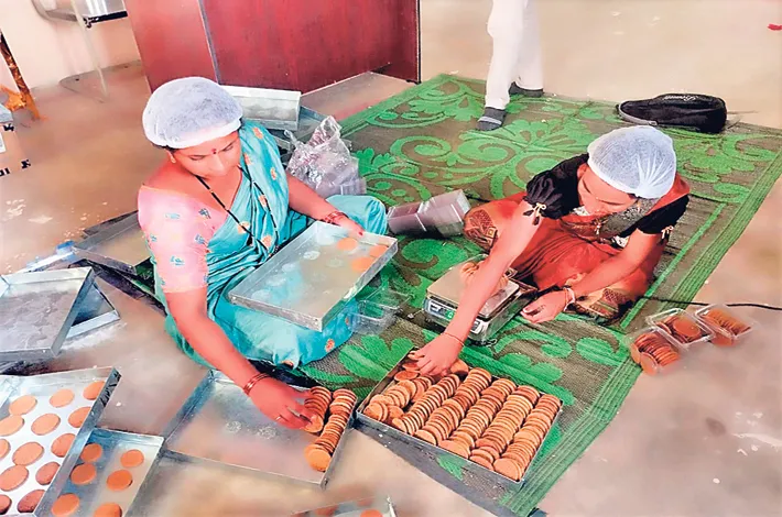 తర్వాత బయటకు తీస్తారు. అంతే ఇక మిల్లెట్ బిస్కెట్ రెడీ. ఆపై ట్రైలను బయటకు తీసి బిస్కెట్లను ప్యాకింగ్ కవర్లలో కావాలిసినంతగా వేయింగ్ మిషన్పై పెట్టీ ప్యాకింగ్ చేసి వాటికి తమ యూనిట్కి సంభందించిన స్టిక్కర్లను వేసి ప్యాక్ చేస్తారు.