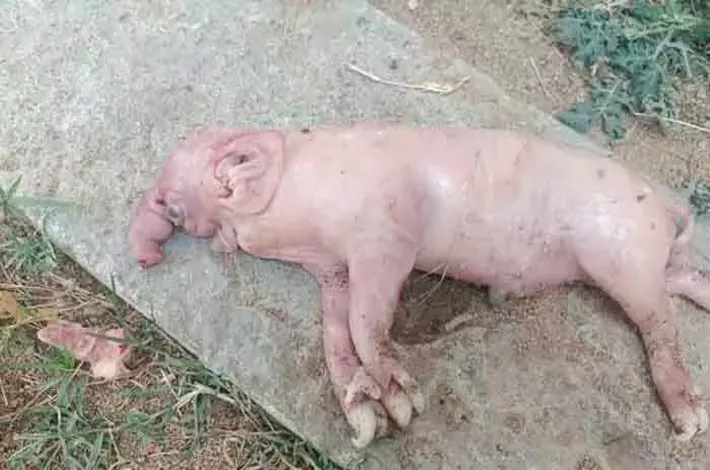 పంది కడుపులో ఏనుగు పోలికతో వింత పిల్ల జననం