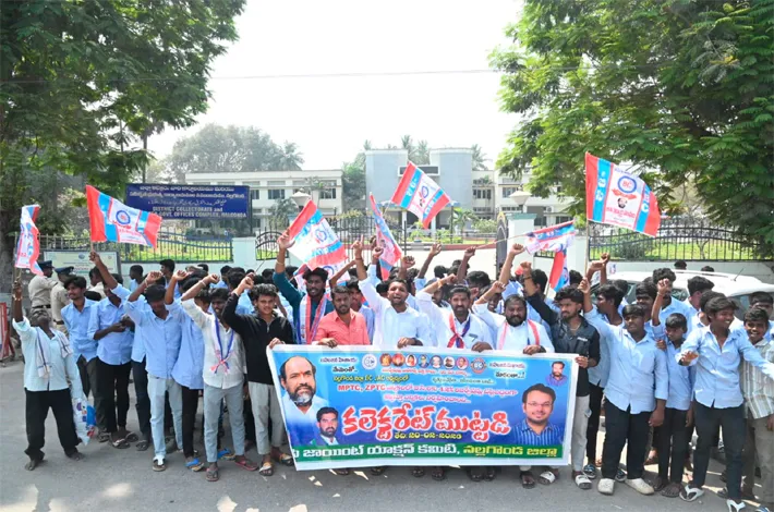 నల్లగొండ టౌన్, ఫిబ్రవరి 20: రానున్న ఎంపిటిసి జడ్పిటిసి ఎన్నికలు బీసీలకు 42 శాతం రిజర్వేషన్లు అమలు చేయాలని డిమాండ్ చేస్తూ శుక్రవారం బీసీ విద్యార్థి సంఘం ఆధ్వర్యంలో నల్లగొండ జిల్లా కలెక్టరేట్ ముట్టడికీ ప్రయత్నించారు. ఈ సందర్భంగా బీసీ విద్యార్థి సంఘం జిల్లా అధ్యక్షుడు అయితగోని జనార్దన్ గౌడ్ మాట్లాడుతూ ఎంపిటిసి - జడ్పిటిసి ఎన్నికలలో 42 శాతం రిజర్వేషన్లు పెట్టకపోతే తీవ్ర పరిమాణాలు ఉంటాయని, బీసీలను ఇంకెన్నిసార్లు మోసం చేస్తారని హెచ్చరించారు.