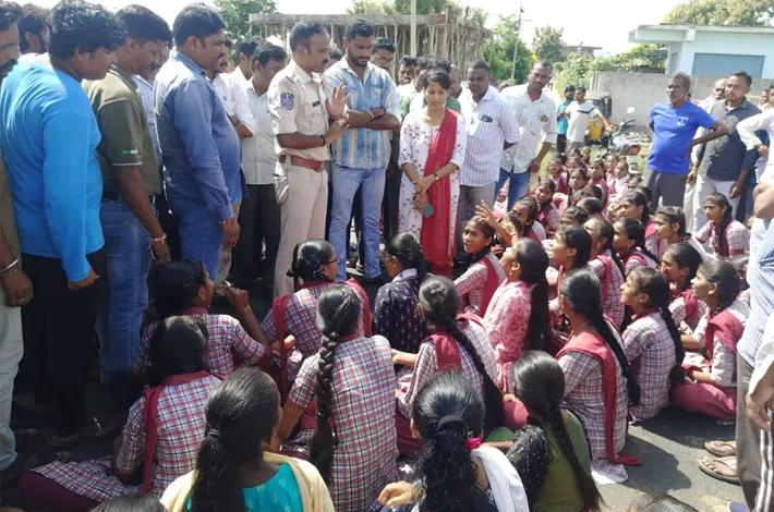 నిందితునికి శిక్ష పడే వరకు ఆందోళన కార్యక్రమాలు చేపడతామని స్పష్టం చేశారు. పూర్తి విచారణ చేపట్టి క్రూర మృగంలా వ్యవహరించిన నిందితున్ని పై ఫోక్సో ,నిర్భయ చట్టాలతో పాటు పలు సెక్షన్ల కింద కేసు నమోదు చేసి కఠినంగా శిక్షించాలని ప్రజలు డిమాండ్ చేస్తున్నారు. నేషనల్ హైవే పై విద్యార్థులు ధర్నా చేస్తున్న విషయాన్ని తెలుసుకున్న స్థానిక సీఐ సతీష్ అక్కడికి చేరుకొని నిందితునికి చట్ట ప్రకారం కఠిన శిక్షలు పడేవిధంగా చర్యలు తీసుకుంటామని ఆందోళనను విరమించాలని విద్యార్థులను సముదాయించారు. దీంతో విద్యార్థులు ఆందోళన విరమించి పాఠశాలకు వెళ్లారు.