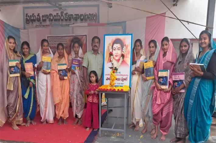 మహబూబాబాద్,(విజయక్రాంతి): ఆడపిల్లలకు విద్యా ప్రాముఖ్యతను చాటి చెప్పిన క్రాంతికారి సావిత్రిబాయి పూలేను స్ఫూర్తికి తెచ్చుకునే విధంగా మహబూబాబాద్ జిల్లా కేంద్రంలో బాలికల జూనియర్ కళాశాలలో నిర్వహించిన సావిత్రిబాయిపూలే జయంతి వేడుకల కార్యక్రమంలో విద్యార్థినిలు జ్యోతిబాపూలే వేషధారణలో కార్యక్రమాన్ని నిర్వహించారు. చదువుల తల్లి, రచయిత, సంఘసంస్కర్త సావిత్రిబాయి పూలే జయంతి ఉత్సవాలను ప్రభుత్వ బాలికల జూనియర్ కళాశాలలో శనివారం ఘనంగా నిర్వహించారు.
