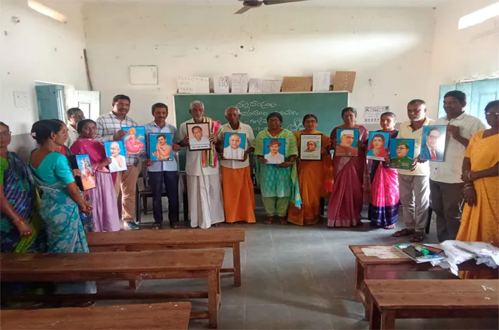 తన సొంత ఖర్చులతో పాఠశాల విద్యార్థులకు స్వతంత్ర సమరయోధులు మహాత్మా గాంధీ సుభాష్ చంద్రబోస్,జవహర్ లాల్ నెహ్రూ, భగత్ సింగ్,చంద్రశేఖర్ అజాద్,వివేకానంద, సర్దార్ వల్లభాయ్ పటేల్, చదువులతల్లి సా విత్రి బాయి పూలే,భారత రాజ్యాంగ నిర్మాత డాక్టర్ బిఆర్ అంబేద్కర్,సరోజినీ నాయుడు, ఝాన్సీ రాణి,తెలంగాణ రాష్ట్ర సృష్టికర్త ప్రో పేసర్ జయ శంకర్,తదితరులు మేధావుల చిత్రపటాలను పాఠశాల విద్యార్థులకు బహుకరించారు. ఈ సందర్భంగా వారు మాట్లా డుతూ మేధావుల జీవిత చరిత్రలు తెలుసుకుని విద్యార్థులు గొప్పప్రయోజకులు కావా లని కోరారు.