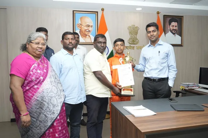 ముషీరాబాద్ (విజయక్రాంతి): విద్యార్థులు క్రమశిక్షణతో చదువుతూ విద్యతో పాటు క్రీడల్లో రాణించి రాష్ట్రానికి మంచి గుర్తింపు తీసుకురావాలని జిల్లా కలెక్టర్ అనుదీప్ దురిశెట్టి(District Collector Anudeep Durishetti) అన్నారు. ఈ మేరకు సోమవారం స్కూల్ గేమ్స్ ఫెడరేషన్ ఆఫ్ ఇండియా జరిగిన జాతీయస్థాయి పోటీల్లో తెలంగాణ రాష్ట్రం ద్వితీయ స్థానం కైవసం చేసుకున్న సందర్భంగా కోచ్ పులి కిషోర్ కుమార్ ఆధ్వర్యంలో జిల్లా కలెక్టర్ ను మర్యాదపూర్వకంగా కలిశారు. సందర్భంగా విద్యార్థులు ప్రదర్శించిన క్రీడా స్ఫూర్తిని కలెక్టర్కు వివరించారు. ఈ సందర్భంగా కలెక్టర్ క్రీడాకారులను అభినందించి ప్రశంసా పత్రాలను అందజేశారు. అనంతరం తెలంగాణ కోచ్ పులి కిషోర్ కుమార్ మాట్లాడుతూ... జాతీయస్థాయిలో జరిగిన క్రీడా పోటీల్లో ఎలాంటి ఇబ్బందులు తలెత్తకుండా అన్ని విధాల సహకరించిన డీఈవో రోహిణికి వారు కృతజ్ఞతలు తెలిపారు. ఈ కార్యక్రమంలో స్కూల్ గేమ్స్ ఫెడరేషన్ ఆఫ్ ఇండియా మేనేజర్ డాక్టర్ కె రామ్ రెడ్డి తదితరులు పాల్గొన్నారు.