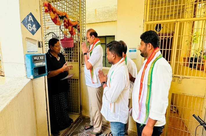 కరీంనగర్, నవంబరు 5 (విజయ క్రాంతి): హైదరాబాద్ లోని జూబ్లీ హిల్స్ ని యోజకవర్గం ఉప ఎన్నిక సందర్భంగా సు డా చైర్మన్ కోమటిరెడ్డి నరేందర్ రెడ్డి 97 వ డివిజన్ లోని ఎల్లారెడ్డిగూడలో బుధవారం ఎన్నికల ప్రచారంలో పాల్గొన్నారు. కాంగ్రెస్ అభ్యర్థి నవీన్ యాదవ్ ను గెలిపించాలని ఇంటింటి ప్రచారం చేశారు. సుడా చైర్మన్ తో కలిసి సిటీ కాంగ్రెస్ నాయకులు కొట్టె ప్ర భాకర్, కీర్తి కుమార్, ఉప్పరి అజయ్, బాలకృష్ణ తదితరులు ప్రచారంలోపాల్గొన్నారు.