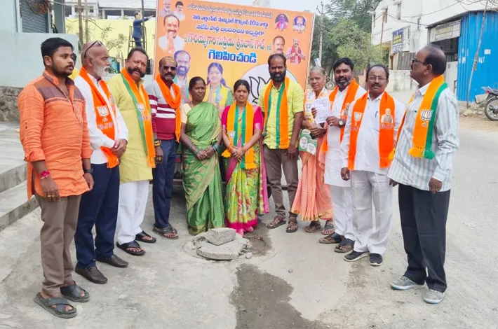 ఎల్లంపేట 10వ వార్డులో ఓటర్లను అభ్యర్థిస్తున్న బీజేపీ అభ్యర్థి