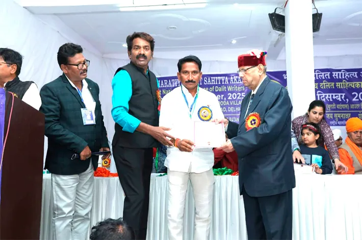 భీమదేవరపల్లి, డిసెంబర్ 12 (విజయక్రాంతి) హనుమకొండ జిల్లా భీమదేవరపల్లి మండలం కొత్తపల్లి గ్రామనికి చెందిన సామాజిక వేత్త, బీసీ ఉద్యమ నాయకుడు అనేక సామాజిక పోరాటాలు చేసిన మండల సురేందర్ కు, పద్మశాలి 2025 కు గాను మహాత్మా జ్యోతి భా పులే నేషనల్ ఫెలోషిప్ అవార్డు ను డాక్టర్ ఏస్.సుమనాక్షర్, జాతీయ దళిత సాహిత్య అకాడమి అధ్యక్షులు న్యూ ఢిల్లీ వారి చేతుల మీదుగా అవార్డు ప్రదానం చేశారు.