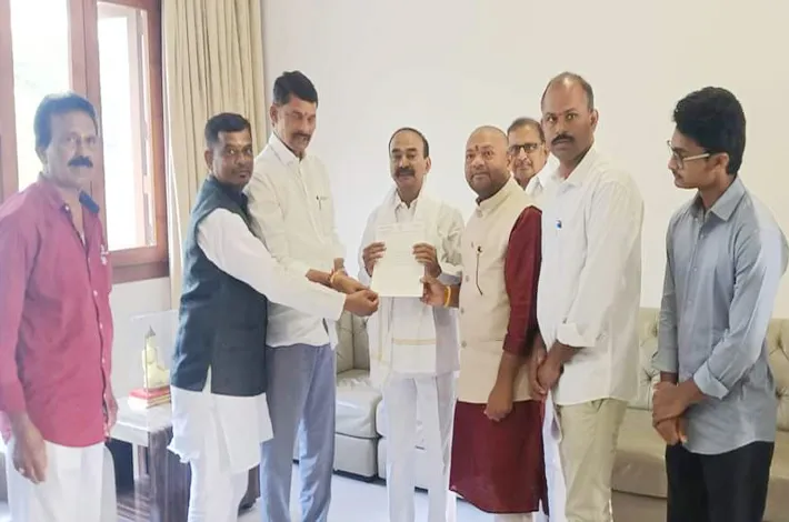 ఘట్ కేసర్,(విజయక్రాంతి): పోచారం మున్సిపాలిటీ పరిధిలో వక్ఫ్ బోర్డు నిషేధిత జాబితాలో ఉన్న సర్వే నెంబర్లను తొలగించాలని కోరుతు పోచారం మున్సిపల్ చైర్మన్ బోయపల్లి కొండల్ రెడ్డి మల్కాజిగిరి ఎంపీ ఈటెల రాజేందర్ కు ఆదివారం వినతి పత్రం అందజేశారు. మున్సిపాలిటీ పరిధి పోచారం లోని సర్వే నెంబర్ 6, ఇస్మాయిల్ ఖాన్ గూడ లోని సర్వే 3 5, 6, 56, 64, 66, 67, అన్నోజిగూడ లోని సర్వే నెంబర్లు 28,92, 841, 843, 844, 145, 146, 147, 90 నుండి 100 వరకు, యంనంపేట్ లోని సర్వే నెంబర్ 17, కొర్రెముల లోని సర్వే నెంబర్లు 27, 423, 667,667, 669, 670/1,890, కాచవానిసింగారం లోని సర్వే నెంబర్ 120, ప్రతాపసింగారం సర్వే నెంబర్లు 14, 202, 202/1, 235, 281 ల లోని 64 ఎకరాల భూమి ని వక్ఫ్ బోర్డు నిషేధిత జాబితాలో చేర్చారని, వాటిని తొలగించాలని వినతి పత్రంలో కోరారు. వినతి పత్రం అందజేసిన వారిలో కౌన్సిలర్ గొంగళ్ల మహేష్, నాయకులు నర్రి కాశయ్య, బాల్ రెడ్డి తదితరులు ఉన్నారు.