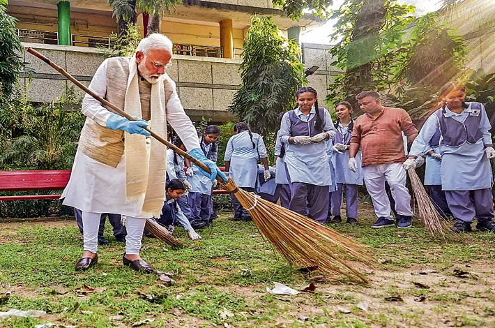 గాంధీజీ జయంతిని పురస్కరించుకొని ప్రారంభించిన స్వచ్ఛభారత్కు పదేండ్లు పూర్తికావడం సంతోషంగా ఉందన్నారు. ఈ సందర్భంగా ఢిల్లీలోని ఓ స్కూల్లో విద్యార్థులతో కలిసి స్వచ్ఛభారత్ నిర్వహించారు. చీపురు పట్టి స్కూల్ పరిసరాలను శుభ్రం చేశారు. స్వచ్ఛభారత్లో ప్రజలు సైతం పాల్గొనాలని ఈ సందర్భంగా మోదీ పిలుపునిచ్చారు. ‘నేను, నా యువ స్నేహితులతో కలిసి స్వచ్ఛ అభియాన్లో భాగమయ్యా.