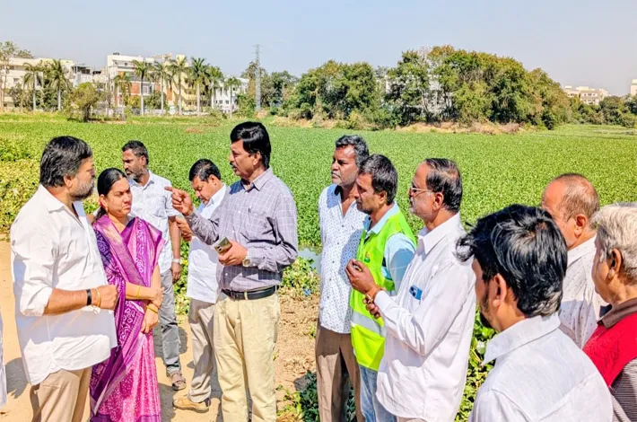 ఉప్పల్,(విజయక్రాంతి): గత రెండు మూడు నెలలుగా నాచారం హెచ్ఎంటి పెద్ద చెరువులో గుర్రపు డెక్క తొలగించకుండా కాలయాపన చేస్తున్న కాంట్రాక్టర్ పై చర్యలు తీసుకోవాలని నాచారం కార్పొరేటర్ శాంతి సాయి జన్ శేఖర్ అధికారులను ఆదేశించారు. శనివారం రోజున జిహెచ్ఎంసి ఎట్మాలజీ ఎస్సీ మాధవరెడ్డితో కలిసి కార్పొరేటర్ శాంతి పెద్ద చెరువు సందర్శించారు.
