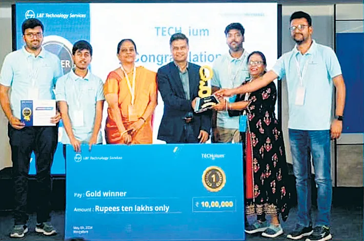 ఇందులో తమ కళాశా లలోని ఈసీఈ విభాగానికి చెందిన విద్యా ర్థులు డిటెక్ట్ అవాయిడ్ సిస్టమ్స్ కోసం ఏఐ ఆధారిత సిట్యూయేషనల్ అవేర్నెస్ అల్గా రిథమ్పై చేసిన ప్రాజెక్టు నిర్ణేతలను ఆకట్టు కుందన్నారు. ఈ ప్రదర్శనలో ప్రథమ బహు మతి పొందిన విద్యార్థులకు పది లక్షల రూపాయల నగదుతో పాటు ప్రత్యేక జూరీ అవార్డు అందజేశారని తెలిపారు. కళాశాల చైర్మన్ విష్ణురాజు, కార్య దర్శి ఆదిత్య విశ్వం విద్యార్థులకు శుభాకాంక్షలు తెలిపారని ప్రిన్సి పాల్ వెల్లడించారు. కార్యక్రమంలో డైరెక్టర్ డాక్టర్ లక్ష్మీప్రసాద్, డీజీఎం కాంతారావు, మేనేజర్ బాపిరాజు పాల్గొన్నారు.