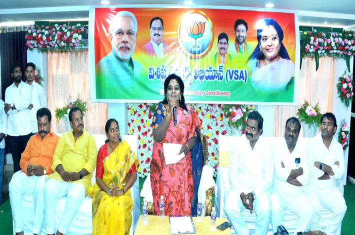 సంగారెడ్డి/మెదక్, మే 4 (విజయక్రాంతి): ప్రతి బీజేపీ కార్యకర్త పార్లమెంట్ ఎన్నికల్లో కష్టాపడి పనిచేసి జహీరాబాద్ ఎంపీ అభ్యర్థి బీబీ పాటిల్ను భారీ మోజార్టీతో గెలిపించాలని, మోదీని బలమైన శక్తిగా చేయాలని మాజీ గవర్నర్ తమిళిసై సౌందర్రాజన్ పిలుపునిచ్చారు. శనివారం సంగారెడ్డిలో నిర్వహించిన జహీరాబాద్ లోక్సభ ముఖ్యకార్యకర్తల సమావేశంలో, విశేష్ సంపర్క్ అభియాన్లో భాగంగా మెదక్లో ఏర్పాటు చేసిన మేధావుల ఆత్మీయ సమ్మేళనంలో ఆమె మాట్లాడారు. కేంద్ర ప్రభుత్వం అమలు చేస్తున్న అభివృద్ధి, సంక్షేమ పథకాలు ప్రజలకు వివరించి, పార్టీని బలోపేతానికి కృషి చేయలని సూచించారు.మెదక్ అభివృద్ధి కోసం బీజేపీ అభ్యర్థి రఘునందన్రావును భారీ మెజార్టీతో గెలిపించాలని కోరారు.