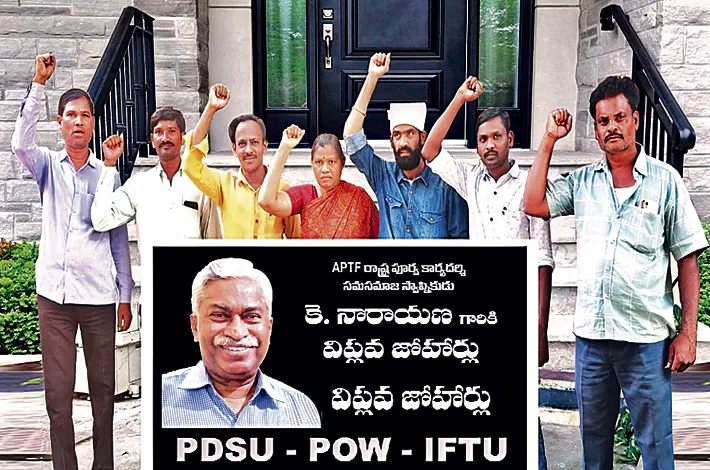 ఆయనకి పిడిఎస్యు, పిఓడబ్ల్యూ, ఐఎఫ్టియు కార్యవర్గా లు ఆదివారం విప్లవ జోహార్లను అర్పించారు. ఆయన జీవిత కాలం మొత్తం ఉపా ధ్యాయ రంగంలో పనిచేస్తూ నిరుపేద విద్యార్థుల విద్య భవిష్యత్తు కోసం కృషి చేశారన్నారు. ఈ కార్యక్రమంలో పిఓ డబ్ల్యు రాష్ట్ర అధ్యక్షురాలు ఎం.సరళ, ఐఎఫ్టియు జాతీ య నాయకులు విజయ్, పిడిఎస్ యు రాష్ట్ర సహాయ కార్యదర్శి కె. గణేష్, ట్రేడ్ యూనియన్ నాయకులు భాస్కర్. సమ్మయ్య, నరసయ్య, ప్రతాప్ తదితరులు పాల్గొని నివాళులు అర్పించారు.