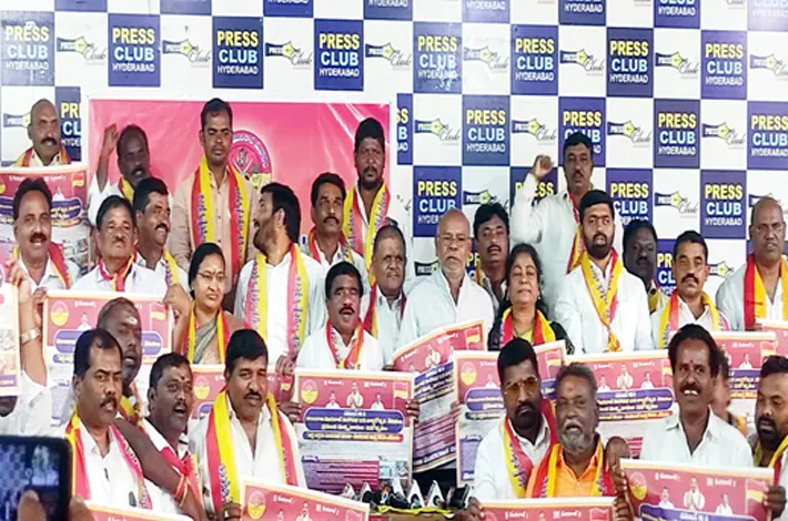 తమ పోరాటాల ఫలితంగా కో కాపేటలో ముదిరాజ్ భవనం కోసం 300 కోట్ల విలువైన ఐదు ఎకరాలు స్థలా న్ని సాధించామన్నారు. కామారెడ్డి డిక్లరేషన్ లో ఇచ్చిన హమి ప్రకారం 42% విద్యా ఉద్యోగ రిజర్వేషన్లు తమకు కల్పించాలని కోరారు. అలాగే బీసీ-డీలో ఉన్న ముదిరాజులను బీసీ-ఏలో చేర్చాలని కోరారు. ముదిరాజ్ సొసైటీ కార్పొ రేషన్ ఏర్పాటు చేసి రూ.100 కోట్ల నిధు లు కేటాయించాలని ప్రభుత్వాన్ని విజ్ఞప్తి చేశారు. అధ్యక్షుడు ఉప్పరి నారాయణ, ఉపాధ్యక్షులు బల్ల సత్తయ్య, భద్ర మౌని యాదయ్య, మహిళా అధ్యక్షురాలు ఎం,వరలక్ష్మి పాల్గొన్నారు.