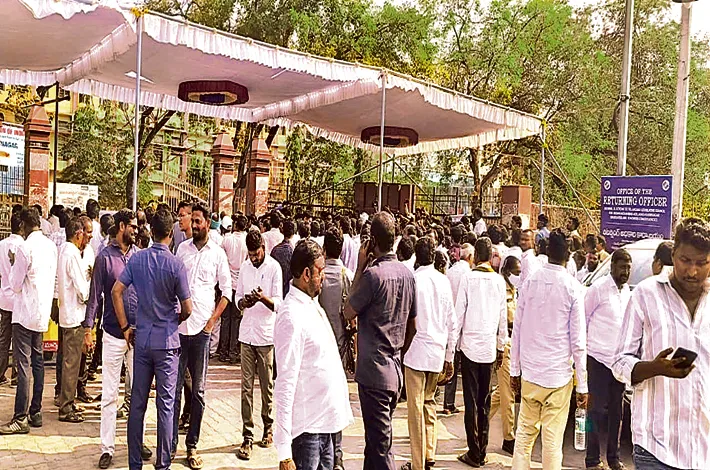 దీనిని గమనించిన రవీందర సింగ్ తీవ్ర ఆగ్రహం వ్యక్తం చేశా రు. ఈ క్రమంలో రెండు వర్గాల కార్యకర్తల పోటాపోటీగా నినాదాలు చేస్తూ తోపులాట జరిగింది. పోలీసులు ఇరువర్గాలను చెదర గొట్టి నామినేషన్ల ప్రక్రియ యధావిధిగా కొనసాగేలా చర్యలు తీసుకున్నారు. సామా న్యులకు ఒక న్యాయం, అధికార పార్టీ మం త్రులకు మరో న్యాయం అంటూ రవీంద ర్సింగ్ విమర్శించారు.