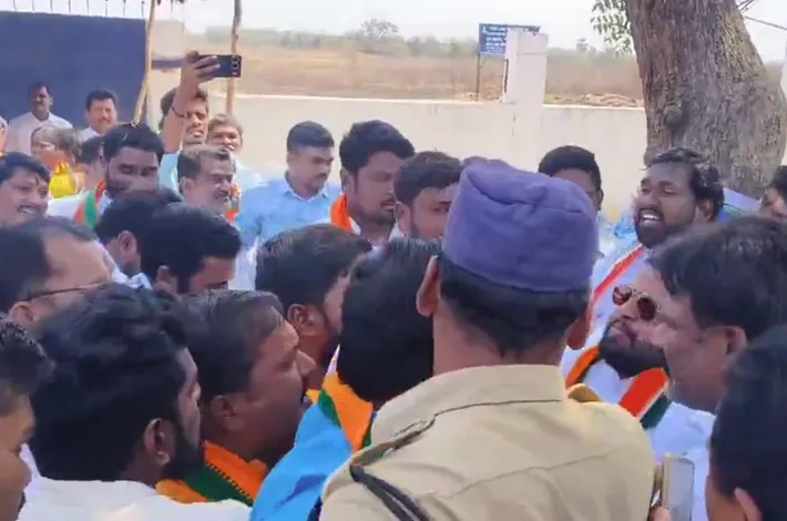 హైదరాబాద్: వరంగల్ జిల్లాలోని మామునూర్ వద్ద బీజేపీ- కాంగ్రెస్(BJP-Congress) శ్రేణుల మధ్య ఘర్షణ వాతావరణ నెలకొంది. కాంగ్రెస్- బీజేపీ శ్రేణుల తోపులాటతో మామునూర్ వద్ద ఉద్రికత్తత చోటుచేసుకుంది. మామునూర్ విమానాశ్రయానికి(Warangal Mamnoor Airport) కేంద్ర ప్రభుత్వం గ్రీన్ సిగ్నల్ ఇచ్చింది. కేంద్రం అనుమతి ఇవ్వడంతో ప్రధాని నరేంద్ర మోదీకి బీజేపీ శ్రేణులు పూలాభిషేకం చేసేందుకు భారీగా తరలివచ్చారు. బీజేపీ నేతలు వచ్చిన సమయంలోనే కాంగ్రెస్ నేతలు విమానాశ్రయం వద్దకు చేరుకున్నారు. దీంతో ఇరు వర్గాల ఒకేసారి విమానాశ్రయం వద్దకు రావడంతో ఘర్షణ తలెత్తింది. రాష్ట్ర ప్రభుత్వం(Telangana Government) వల్లే విమానాశ్రయానికి అనుమతులు వచ్చాయని కాంగ్రెస్ శ్రేణులు తెలిపారు. పోటాపోటీగా ప్రధాని మోడీ చిత్రపటానికి బీజేపీ, రేవంత్ చిత్రపటానికి కాంగ్రెస్ శ్రేణుల పాలాభిషేకం చేయడంతో ఇద్దరి మధ్య వాగ్వాదం చోటుచేసుకుంది. దీంతో రంగంలోకి దిగిన పోలీసులు భారీగా మోహరించారు.