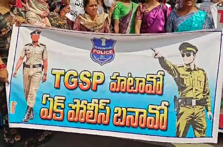 హైదరాబాద్: ఏక్ పోలీస్ ఏక్ స్టేట్ విధానం అమలు చేయాలని డిమాండ్ చేస్తూ... శుక్రవారం పోలీసు కానిస్టేబుల్ భార్యలు తెలంగాణ సచివాలయాన్ని ముట్టడికి ప్రయత్నించారు. ఈ సందర్భంగా ఏక్ పోలీసు విధానాన్ని అమలు చేసి తమ భర్తలకు ఒక దగ్గర డ్యూటీ చేసే అవకాశం కల్పించాలని డిమాండ్ చేశారు. అది అమలు అయ్యేవరకు మెస్ తీసివేసి ఒకే దగ్గర 3 నుంచి 5 సంవత్సరాలు పోస్టింగ్ ఇవ్వాలన్నారు. రిక్రూట్మెంట్ విధానంలో ప్రత్యేక బలగాలుగా కొంతమంది ఉద్యోగులను తీసుకుంటారని... బెటాలియన్ల ఉద్యోగాలు చేయడం వల్ల తమవారు కుటుంబాలకు దూరమవుతున్నామని ఆవేదన వ్యక్తం చేశారు. కాగా సచివాలయం వద్ద కాసేపు ఉద్రిక్తత నెలకొంది.