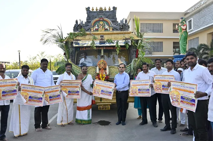 మహబూబాబాద్, డిసెంబర్ 19 (విజయక్రాంతి): ధర్మ ప్రచారంలో భాగంగా తెలుగు రాష్ట్రాల్లో యాదగిరి గుట్ట శ్రీ లక్ష్మీ నరసింహ స్వామి వారి కల్యాణ మహోత్సవం నిర్వహిస్తున్న సందర్భంగా మొట్టమొదటిసారిగా జయశంకర్ భూపాలపల్లి జిల్లాకు విచ్చేసిన శ్రీ లక్ష్మీనరసింహస్వామి ధర్మ ప్రచార రథానికి ఐ.డి.ఓ.సి కార్యాలయంలో జిల్లా కలెక్టర్ రాహుల్ శర్మ స్వాగతం పలికి శ్రీ యాదాద్రి లక్ష్మీ నరసింహ స్వామిని దర్శించుకున్నారు. రథం ముందు కొబ్బరికాయ కొట్టి ధర్మ ప్రచారాన్ని ప్రారంభించారు.
