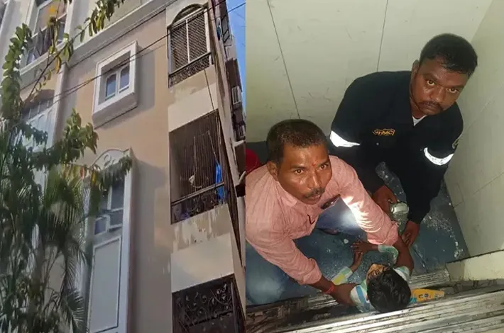 లిఫ్టులో ఇరుక్కున్న బాలుడి పరిస్థితి విషమం..