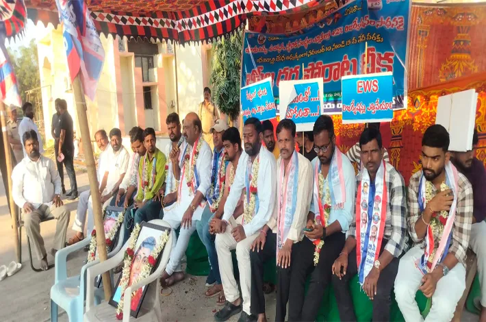 బుధవారం కాకతీయ యూనివర్సిటీలోని ఎస్డీఎల్సీ ప్రాంగణంలో కాకతీయ యూనివర్సిటీ బీసీ జేఏసీ విద్యార్థి చైర్మన్ ఆ రేగంటి నాగరాజు గౌడ్ బీసీలకు విద్యా, ఉ ద్యోగ, స్థానిక సంస్థల కోటాలో 42 శాతం రిజర్వేషన్లను కల్పిస్తూ రాష్ట్ర ప్రభుత్వం అసెంబ్లీలో బీసీ రిజర్వేషన్ల బిల్లును ప్రవేశపెట్టి ఆ మోదింపజేసిన బీసీ బిల్లును కేంద్ర ప్రభుత్వం రాజ్యాంగ సవరణ చేసి, 9వ షె డ్యూల్లో చేర్పించాలనే డిమాండ్ తో నేతృత్వంలో చేపట్టిన బీసీ రిజర్వేషన్ల ధర్మ పోరా ట దీక్ష కార్యక్రమానికి ముఖ్య అతిథిగా విచ్చేసిన సిరికొండ మధుసూదనాచారి బీసీ వి ద్యార్థి జేఏసీ చేపట్టిన ధర్మ పోరాట దీక్షకు పూర్తి సంఘీభావం తెలిపి, దీక్షలో పాల్గొన్నా రు.