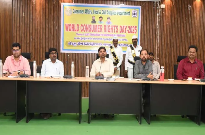 మంచిర్యాల (విజయక్రాంతి): ప్రతి వినియోగదారుడు తన హక్కులను తెలుసుకోవాలని జిల్లా కలెక్టర్ కుమార్ దీపక్ అన్నారు. ప్రపంచ వినియోగదారుల హక్కుల దినోత్సవాన్ని పురస్కరించుకొని శనివారం కలెక్టరేట్ మీటింగ్ హాలులో ఏర్పాటు చేసిన కార్యక్రమానికి జిల్లా అదనపు కలెక్టర్ సబావత్ మోతిలాల్, మంచిర్యాల, బెల్లంపల్లి ఆర్డీవోలు శ్రీనివాస్ రావు, హరికృష్ణ, ఇంచార్జ్ జిల్లా పౌర సరఫరాల అధికారి వేణుగోపాల్, లీడ్ డిస్ట్రిక్ట్ మేనేజర్ తిరుపతిలతో కలిసి సంబంధిత అధికారులు, స్వచ్ఛంద సంస్థలు, పెట్రోలియం సంస్థలు, గ్యాస్ ఏజెన్సీల ప్రతినిధులు, మర్చంట్ అసోసియేషన్ ప్రతినిధులు, రేషన్ డీలర్లతో నిర్వహించిన సమీక్షా సమావేశంలో కలెక్టర్ మాట్లాడారు. 'స్థిరమైన జీవన విధానానికి న్యాయమైన పరివర్తన - మార్పు' అనే అంశంపై ప్రపంచ వినియోగదారుల హక్కుల దినోత్సవం 2025 నిర్వహించడం జరుగుతుందని తెలిపారు.