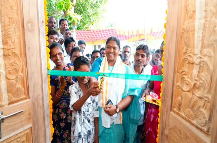 వెంకటాపూర్(రామప్ప) అక్టోబరు 16 (విజయక్రాంతి) : పేదల కలల్ని సాకారం చేసేందుకు ప్రజా ప్రభుత్వం కృషి చేస్తోందని రాష్ట్ర పంచాయతీ రాజ్, గ్రామీణ అభివృద్ధి, గ్రామీణ నీటి సరఫరా, మహిళా, శిశు సంక్షేమశాఖ మంత్రి సీతక్క అన్నారు. గురువారం మండల కేంద్రంలోని బీసీ కాలనీకి చెందిన ఇందిరమ్మ ఇల్లు లబ్ధిదారులైన బయ్యా ప్రమీల ఇందిరమ్మ ఇల్లును మంత్రి సీతక్క, జిల్లా గ్రంథాలయ సంస్థ చైర్మన్ బానోత్ రవి చందర్, మార్కెట్ కమిటీ చైర్మన్ రేగ కళ్యాణిలతో కలిసి ప్రారంభించారు.