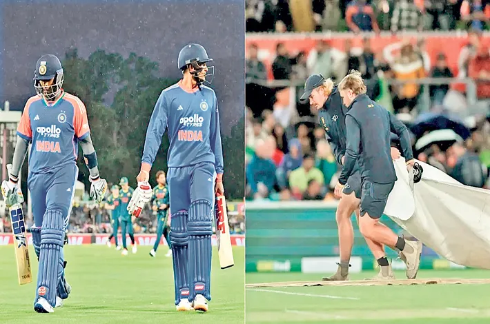 దీంతో మ్యాచ్ను 18 ఓవర్లకు కుదించారు. అభిషేక్ శర్మ 19 రన్స్కు ఔటైనా సూర్యకుమార్ యాదవ్ (39), గిల్ (37) దూకుడుగా ఆడారు. అయితే 9.4 ఓవర్లకు 97/1 స్కోర్ దగ్గర మరోసారి వర్షం అడ్డుపడింది. తర్వాత వాన తగ్గినా మైదానం చిత్తడిగా మారడంతో మ్యాచ్ రద్దు చేస్తున్నట్టు అంపైర్లు ప్రకటించారు.ఇరు జట్ల మధ్య రెండో టీ ట్వంటీ అక్టోబర్ 31న మెల్బోర్న్లో జరుగుతుంది.