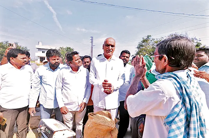 గత యాసంగిలో వడగండ్ల వానకు, ఈ ఏడాది తుఫాన్ వల్ల నష్టపోయిన రైతులకు నష్ట పరిహారం అందలేదని ఆరోపించారు. ఆదివారం సిద్దిపేట జిల్లా చిన్నకోడూరు మండలం మల్లారం గ్రామంలోని వడ్ల కొనుగోలు కేంద్రాన్ని ఆయన పరిశీలించి, మాట్లాడారు. ప్రభుత్వం 85 లక్ష ల టన్నుల వడ్లు కొనుగోలు చేస్తామని చెప్పి, ఇప్పటివరకు ఐదారు లక్ష టన్నుల మాత్రమే కొనుగోలు చేసిందన్నారు. కొన్న వాటికి బిల్లులు కూడా చెల్లించలేదన్నారు.