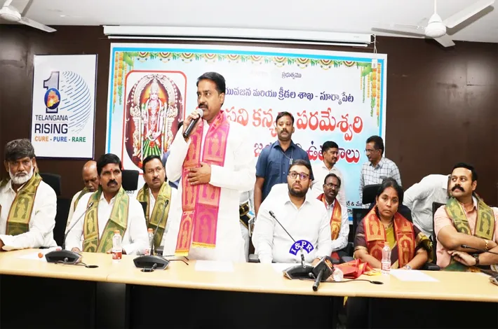 సూర్యాపేట, ఏప్రిల్ 26 (విజయక్రాంతి): ఆర్యవైశ్యులకు అండగా రాష్ట్ర ప్రభుత్వం నిలుస్తుందని, అందులో భాగంగానే వాసవి కన్యకా పరమేశ్వరి జయంతి వేడుకలను అధికారికంగా నిర్వహిస్తున్నట్లు రాష్ట్ర పర్యాటక అభివృద్ధి కార్పొరేషన్ చైర్మన్ పటేల్ రమేష్ రెడ్డి అన్నారు. జిల్లా యువజన, క్రీడల శాఖ ఆధ్వర్యంలో ఆదివారం సమీకృత కలెక్టరేట్ కార్యాలయ సమావేశ మందిరంలో శ్రీ వాసవి కన్యకా పరమేశ్వరి అమ్మవారి జయంతి వేడుకలను జిల్లా కలెక్టర్ తేజస్ నంద్ లాల్ పవార్ అధ్యక్షతన నిర్వహించారు.