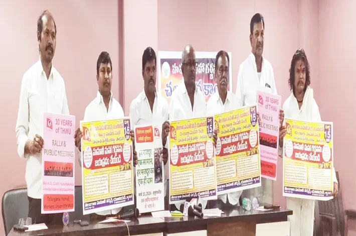 హైదరాబాద్ సిటీబ్యూరో, మార్చి 12 (విజయక్రాంతి): రాష్ట్ర వ్యాప్తంగా ఉన్న పది లక్షల మంది హమాలీ కార్మికుల హక్కుల సాధన కోసం, వెల్ఫేర్ బోర్డు సాధన కోసం ఈ నెల 15వ తేదీన హనుమకొండలో భారీ బహిరంగ సభను నిర్వహించనున్నారు. సోమవారం హైదరాబాద్లోని బషీర్బాగ్ ప్రెస్ క్లబ్లో తెలం గాణ హమాలి వర్కర్స్ యూనియన్ గౌరవ అధ్యక్షులు ఎం.ఏ. కలీం, వర్కింగ్ ప్రెసిడెంట్ శివన్న ఇతర నాయకులతో కలిసి హమాలి మహా గర్జన పోస్టర్ను ఆవిష్క రించారు.