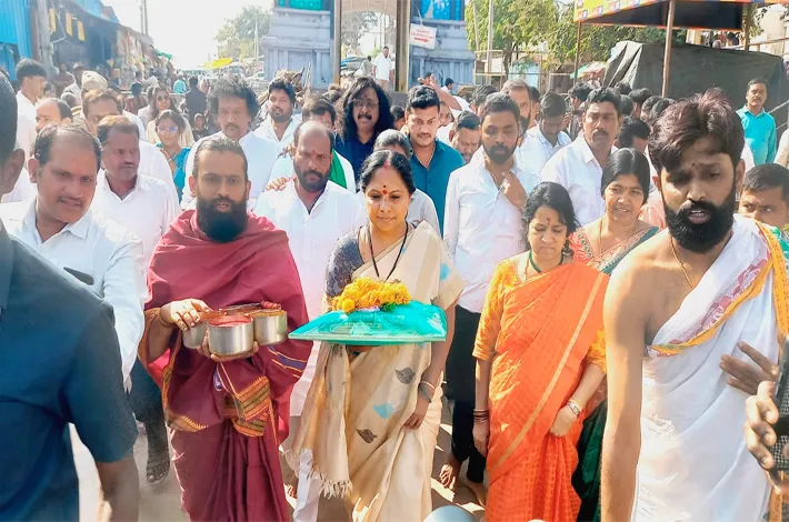 పాపన్నపేట, నవంబర్ 14 :తెలంగాణ జాగృతి సంస్థ అధ్యక్షురాలు కల్వకుంట్ల కవిత శుక్రవారం ప్రసిద్ధ పుణ్యక్షేత్రమైన ఏడుపాయల వనదుర్గామాత ఆలయాన్ని సంద ర్శించారు. ఆమెకు ఆలయ అర్చకులు పూర్ణకుంభంతో ఘన స్వాగతం పలికారు. ప్రత్యేక పూజలు అనంతరం ఆమెను ఆలయ మర్యాదలతో సత్కరించారు. అనంతరం ఆలయ సమీపంలో ఉన్న వనదుర్గ ప్రాజెక్టును ఆమె సందర్శించి మాట్లాడారు.