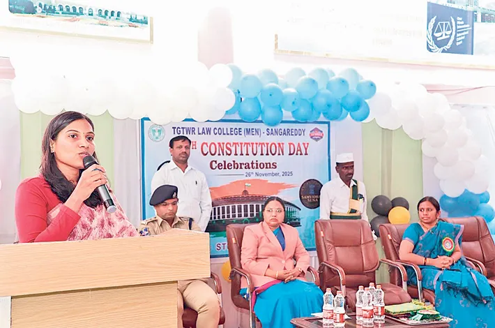 సంగారెడ్డి, నవంబర్ 26 : భారత రాజ్యాంగం అన్ని దేశాల రాజ్యాంగాల కంటే సర్వోన్నతమైనదని సంగారెడ్డి జిల్లా కలెక్టర్ పి.ప్రావీణ్య అన్నారు. బుధవారం భారత రాజ్యాంగ దినోత్సవాన్ని పురస్కరించుకొని సంగారెడ్డి అంబేద్కర్ ప్రభుత్వ న్యాయ కళాశాలలో జరిగిన భారత రాజ్యాంగ దినోత్సవ వేడుకలకు జిల్లా కలెక్టర్ ప్రావీణ్య, జిల్లా న్యాయ సేవాధికార సంస్థ కార్యదర్శి సౌజన్య, జిల్లా ఎస్పీ పరితోష్ పంకజ్ ముఖ్య అతిథిగా హాజరయ్యారు. కలెక్టర్ మాట్లాడుతూ ప్రపంచంలోకెల్లా అతిపెద్ద లిఖితపూర్వక రాజ్యాంగం భారత రాజ్యాంగం అని అన్నారు.