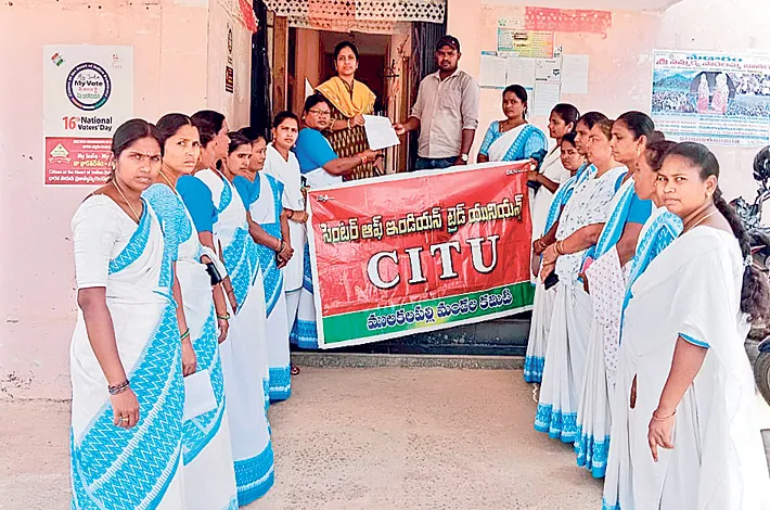 కాంగ్రెస్ ప్రభుత్వం ఎన్నికల ముందు ఆశా వర్కర్ల కు ఇచ్చిన హామీలు వెంటనే అమలు చేయాలని డిమాండ్ చేశారు. ఆశా వర్కర్ల ను ప్రభుత్వ ఉద్యోగులుగా గుర్తించి కనీస వేతనం 26 వేల రూపాయలు ఇవ్వాలని డిమాండ్ చేశారు. యూనియన్ మండల అధ్యక్షురాలు నల్లి సూజాత, లాలుబీ, కోడిమే ఇందిరా,కురం నాగలక్ష్మి, మాణిక్యమ్మ, మీనా, పావని, భారతి, పద్మ, లలిత, పుష్ప తదితరులు పాల్గొన్నారు.