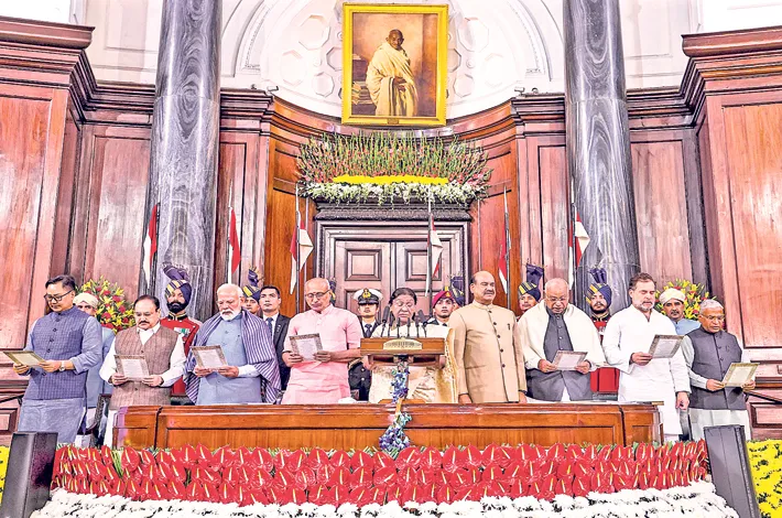 పాల్గొన్న ఉప రాష్ట్రపతి, ప్రధాని, లోక్సభ స్పీకర్, విపక్షనేతలు ఖర్గే, రాహుల్