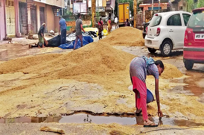 తడిసిన ధాన్యాన్నీ కొనుగోలు చేయాలని రైతుల డిమాండ్