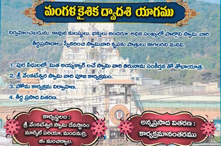 మందమర్రి (విజయక్రాంతి): మిత అయ్యల్యార్ కుల సంఘం ఆధ్వర్యంలో పట్టణంలోని వెంకటేశ్వరాలయంలో ఆదివారం నిర్వహించనున్న మంగళ కౌశిక ద్వాదశ యాగంలో పట్టణ ప్రజలు, భక్తులు అధిక సంఖ్యలో పాల్గొని పూజా కార్యక్రమాలను విజయవంతం చేయాలని సంఘం జిల్లా నాయకులు ధర్మపురి శ్రీనివాస్ కోరారు. మన గుడి కార్యక్రమంలో భాగంగా తిరుమల తిరుపతి దేవస్థానం ఆధ్వర్యంలో నిర్వహించనున్న కార్యక్రమంలో బాగంగా పట్టణ పురవీధుల్లో స్వామివారి తిరునామా సంకీర్తన, శోభయాత్ర నిర్వహించడం జరుగుతుందన్నారు. అనంతరం ఆలయంలో వెంకటేశ్వర స్వామి పూజా కార్యక్రమం, యాగం నిర్వహించడం జరుగుతుందని కార్యక్రమాల అనంతరం భక్తులకు అన్నప్రసాద వితరణ నిర్వహించడం జరుగుతుందని పట్టణ ప్రజలు భక్తులు అధిక సంఖ్యలో పాల్గొని పూజా కార్యక్రమాలను విజయవంతం చేయాలని కోరారు.