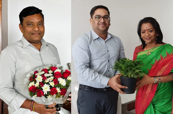 హైదరాబాద్ సిటీబ్యూరో, జూన్ 25 (విజయక్రాంతి): జీహెచ్ఎంసీ పరిధిలోని శేరిలింగంపల్లి, ఎల్బీనగర్ జోన్ల నూతన కమిషనర్లు ఉపేందర్ రెడ్డి, హేమంత్ కేశవ్ పాటిల్ మంగళవారం జీహెచ్ఎంసీ ప్రధాన కార్యాలయంలో నగర మేయర్ గద్వాల విజయలక్ష్మిని మర్యాదపూర్వకంగా కలిశారు. మేయర్ వారికి శుభాకాంక్షలు తెలిపారు.