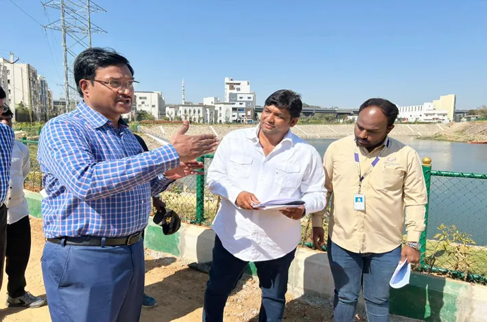 శనివారం హైడ్రా కమి షనర్ ఏవీ రంగనాథ్ క్షేత్రస్థాయిలో పర్యటించి చెరువు అభివృద్ధి పనులను పరిశీలిం చారు. ఈ సందర్భంగా ఆయన మాట్లాడు తూ కాంక్రీట్ జంగిల్లా మారుతున్న నగరంలో ఈ చెరువును ఒక విహార కేంద్రంగా తీర్చిదిద్దాలి. బయటి ఉష్ణోగ్రతలకు, ఇక్కడికి రాగానే ఉండే పచ్చని వాతావరణానికి తేడా తెలిసేలా పనులు ఉండాలి అని అధికారులను ఆదేశించారు.