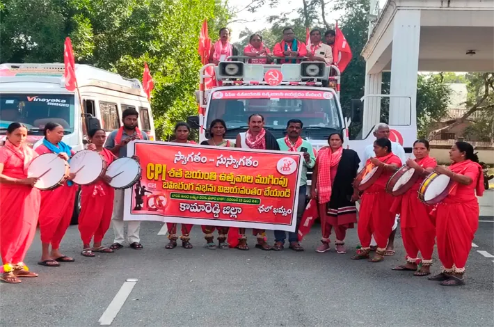 కామారెడ్డి, నవంబర్ 16 (విజయక్రాంతి): కామారెడ్డి జిల్లా కేంద్రంలోని కొత్త బస్టాండ్ వద్ద భారీ ర్యాలీ బహిరంగ సభ ఆదివారం రాత్రి 8 గంటలకు నిర్వహించారు. ఈ బహిరంగ సభకు కామారెడ్డి సిపిఐ జిల్లా కార్యదర్శి . ఎల్. దశరథ్ అధ్యక్షత వహించగా ఈ సభకు ముఖ్య అతిథులుగా సిపిఐ రాష్ట్ర కార్యదర్శి వర్గ సభ్యురాలు పశ్య పద్మ హాజరై మాట్లాడుతూ 100 సంవత్సరాలుగా పూర్తి చేసుకున్న పార్టీ భారత కమ్యూనిస్టు పార్టీని దేశంలో ఇప్పటివరకు ప్రజా సమస్యలపై నిరంతరం పోరాటాలు చేస్తూ ప్రజల ఆదరణ పొందిందని సిపిఐ త్యాగం వెలకట్టలేనిదని ఆమె అన్నారు.