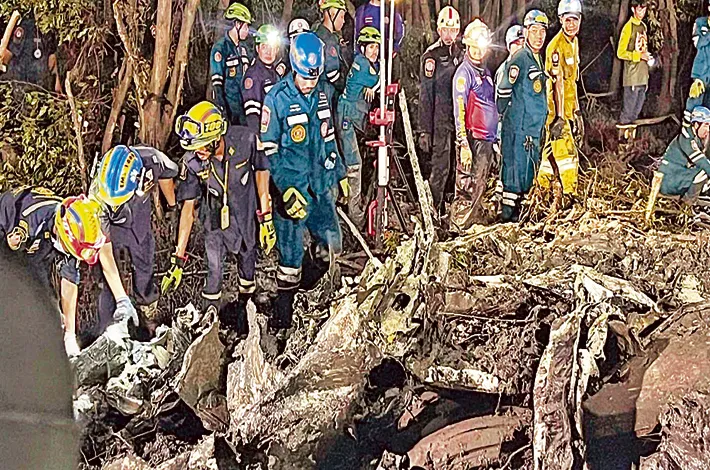 న్యూ ఢిల్లీ, ఆగస్టు 23: థాయ్లాండ్లో గురువారం ఘోర విమాన ప్రమాదం చోటు చేసుకుంది. ఏడుగురు ప్రయాణికులు, ఇద్దరు పైలెట్లతో కలిసి బ్యాంకాక్ నుంచి బయలు దేరిన విమానం బ్యాంగ్ పకాంగ్ జ్లిలాలోని చాచోయెంగాసావో అడవుల్లో కుప్పకూలింది. థాయ్ ఫ్లయింగ్ సర్వీస్ కంపెనీకి చెందిన విమానం గురువారం మధ్యాహ్నం టూరిస్టులతో బ్యాంకాక్ విమానాశ్రయం నుంచి ట్రాట్ ప్రావిన్స్కు వెళ్తుండగా మార్గమధ్యలోని బ్యాంగ్ పకాంగ్ జిల్లాలోని దట్టమైన అటవీ ప్రాంతంలో కూలిపోయింది. ప్రమాదంలో మొత్తం తొమ్మిదిమంది చనిపోగా.. వారిలో ఐదుగురు చైనాకు చెందినవాళ్లు, మరో ఇద్దరు థాయ్ ప్రయాణికులు సహా పైలెట్, కోపైలెట్ ఉన్నట్లు సమాచారం. సహాయక చర్యలు కొనసాగుతున్నాయని పోలీసు అధికారులు తెలిపారు.