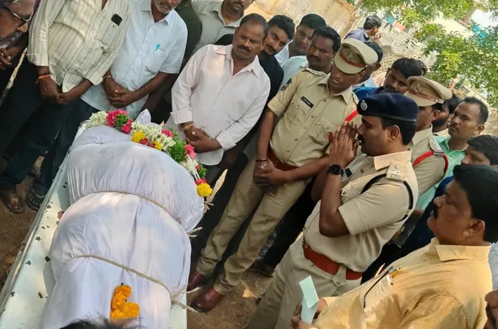 మునగాల: సోమవారం రాత్రి మునగాల పోలీస్ స్టేషన్ పరిధి ముకుందాపురం వద్ద జాతీయ రహదారి 65 పై రోడ్డు ప్రమాదంలో మరణించిన కానిస్టేబుల్ రాంబాబు భౌతికకాయానికి ప్రభుత్వ హాస్పిటల్ నందు పూలమాల వేసి పోలీస్ శాఖ తరపున ఘనంగా నివాళులర్పించారు. ఈ సందర్భంగా ఎస్పీ మాట్లాడుతూ... రాంబాబు మరణించడం చాలా బాధాకరం అన్నారు. దహన సంస్కారాల నిమిత్తం కానిస్టేబుల్ కుటుంబానికి తక్షణ ఆర్థిక సహాయాన్ని అందించారు. రాంబాబు కుటుంబాన్ని పోలీస్ శాఖ అన్ని విధాల ఆదుకుంటుందని అన్నారు. ఆ కుటుంబానికి ప్రభుత్వం ద్వారా, పోలీసు శాఖ ద్వారా రావలసిన అన్ని రకాల ఆర్థిక తోడ్పాట్లను, ప్రభుత్వ సహాయంతో అందించే కారుణ్య నియామక ఉద్యోగం త్వరగా వచ్చేలా కృషి చేస్తాం అన్నారు.